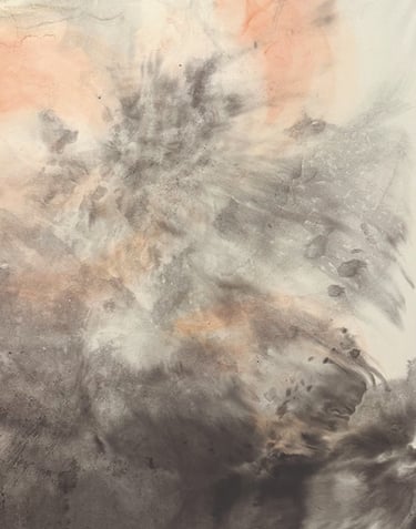 Depuis mon atelier, j’aperçois chaque soir une lampe de rue d’un orange doux, projetant une lueur tamisée dans l’obscurité. Cette lumière, discrète mais persistante, me rappelle les lotus de mes peintures : silencieux, mais présents, comme un repère dans la nuit.